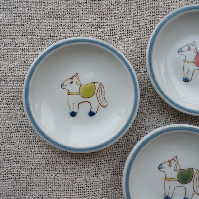 うま5頭【緑系】14㎝皿