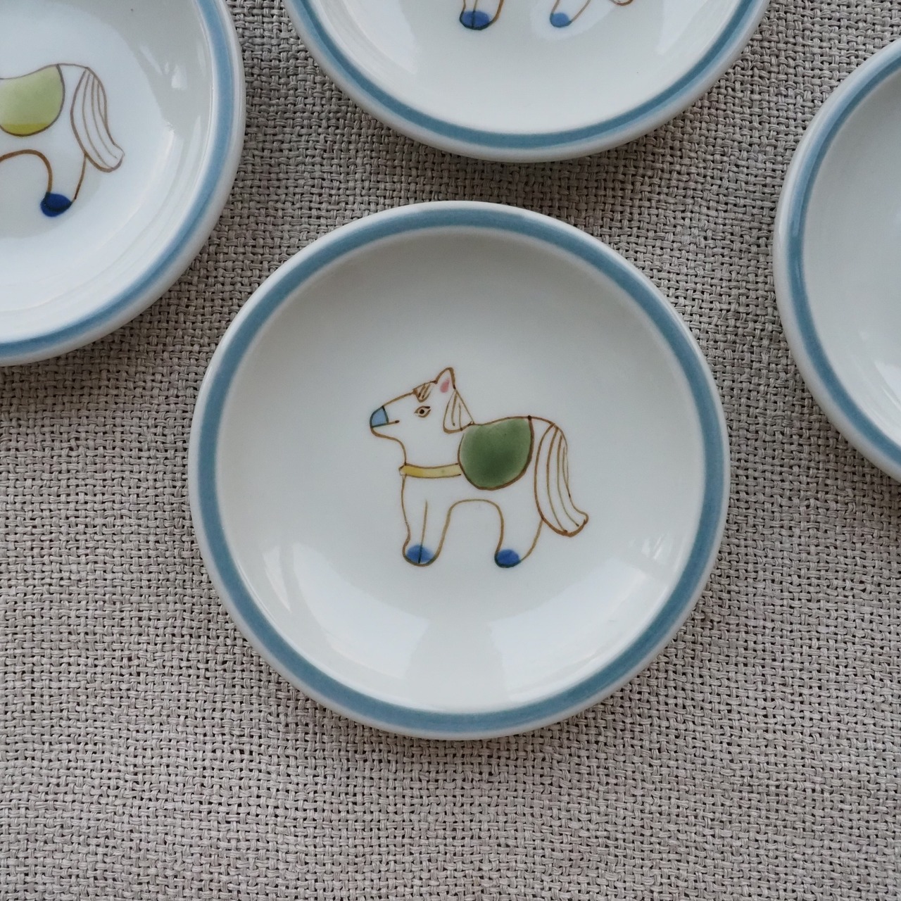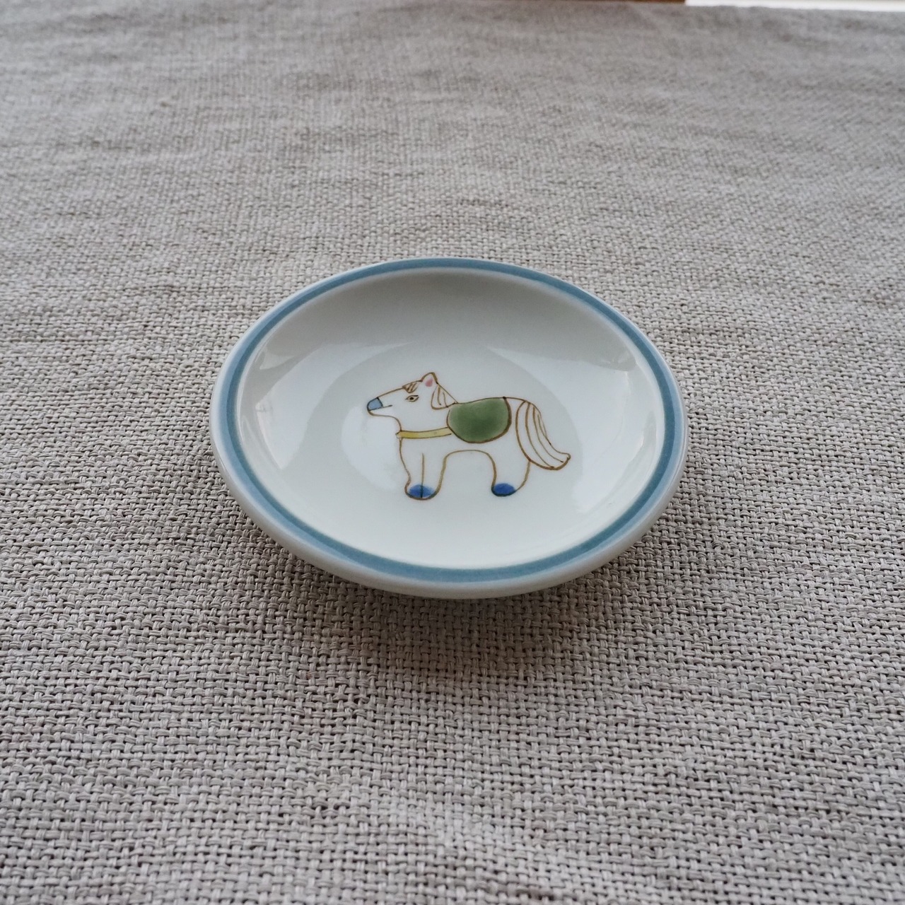 うま【緑】リム付豆皿
