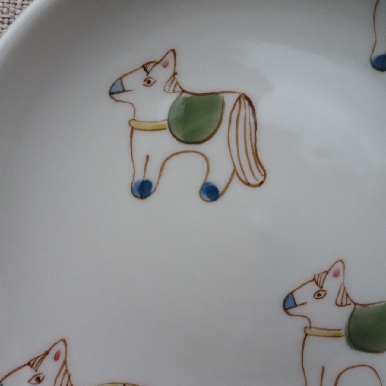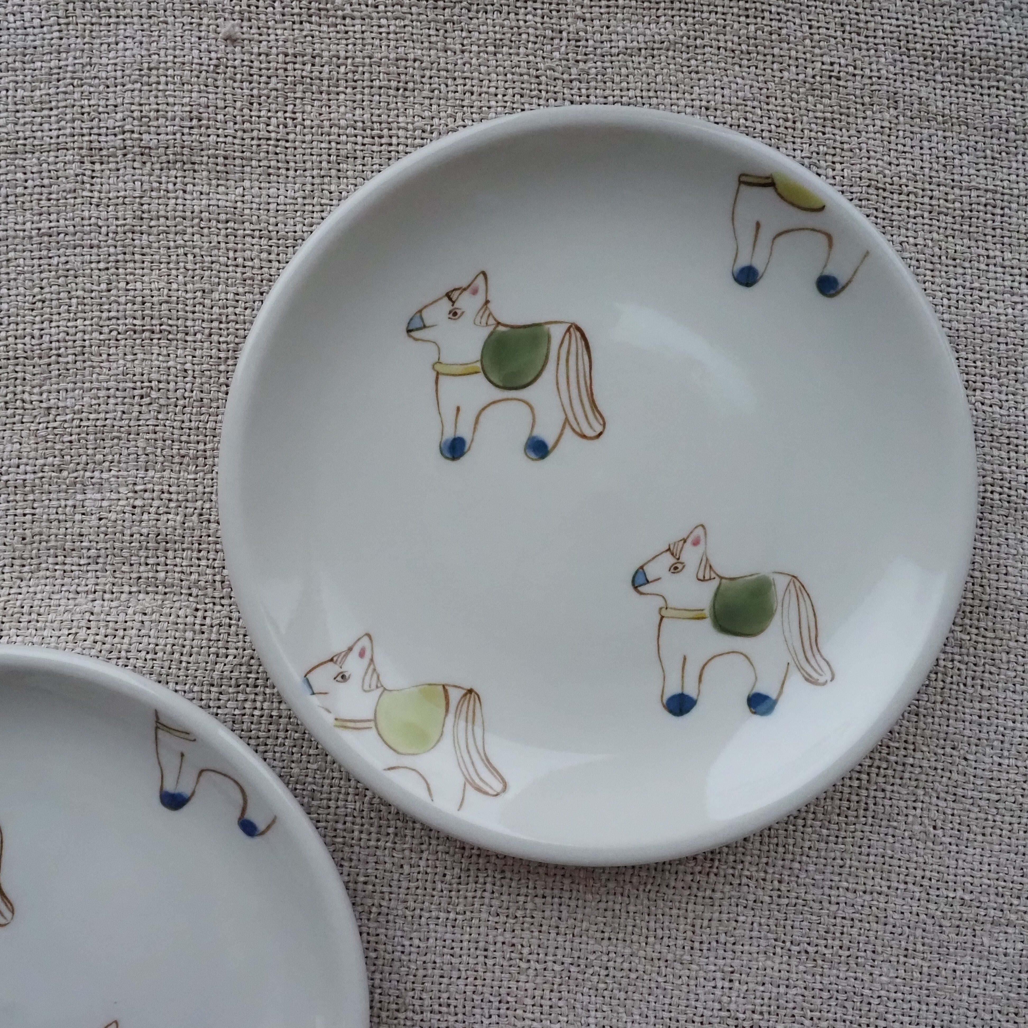 うま4頭【緑系】14㎝皿